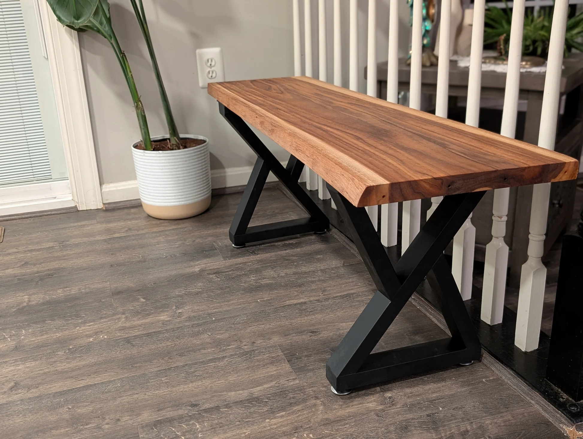 Modern Teak and Metal Hybrid Bench