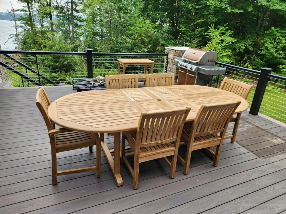 Compact teak sets, such as bistro or folding versions, are invaluable for urban homes with limited outdoor space. They allow homeowners to enjoy the elegance of teak while fitting comfortably on balconies, porches, or small gardens.